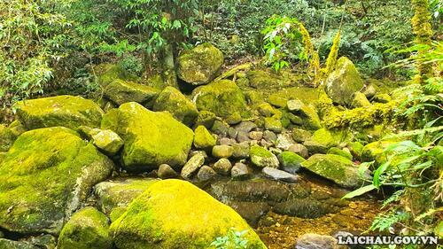 Du khách cũng có thể trải nghiệm chụp những bức ảnh độc đáo bên con suối cạn phủ đầy rêu phong.