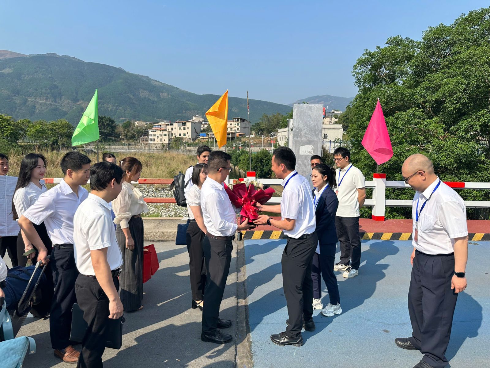 Đồng chí Hồ Tiểu Vũ - Thành viên Ban cán sự Đảng thành phố Cá Cựu, Phó Bí thư Đảng uỷ kiêm Phó Trưởng Ban Quản lý Khu công nghiệp thành phố Cá Cựu tỉnh Vân Nam, Trung Quốc đón đoàn công tác liên ngành sang tham dự Lễ Ký kết Bản ghi nhớ hợp tác.